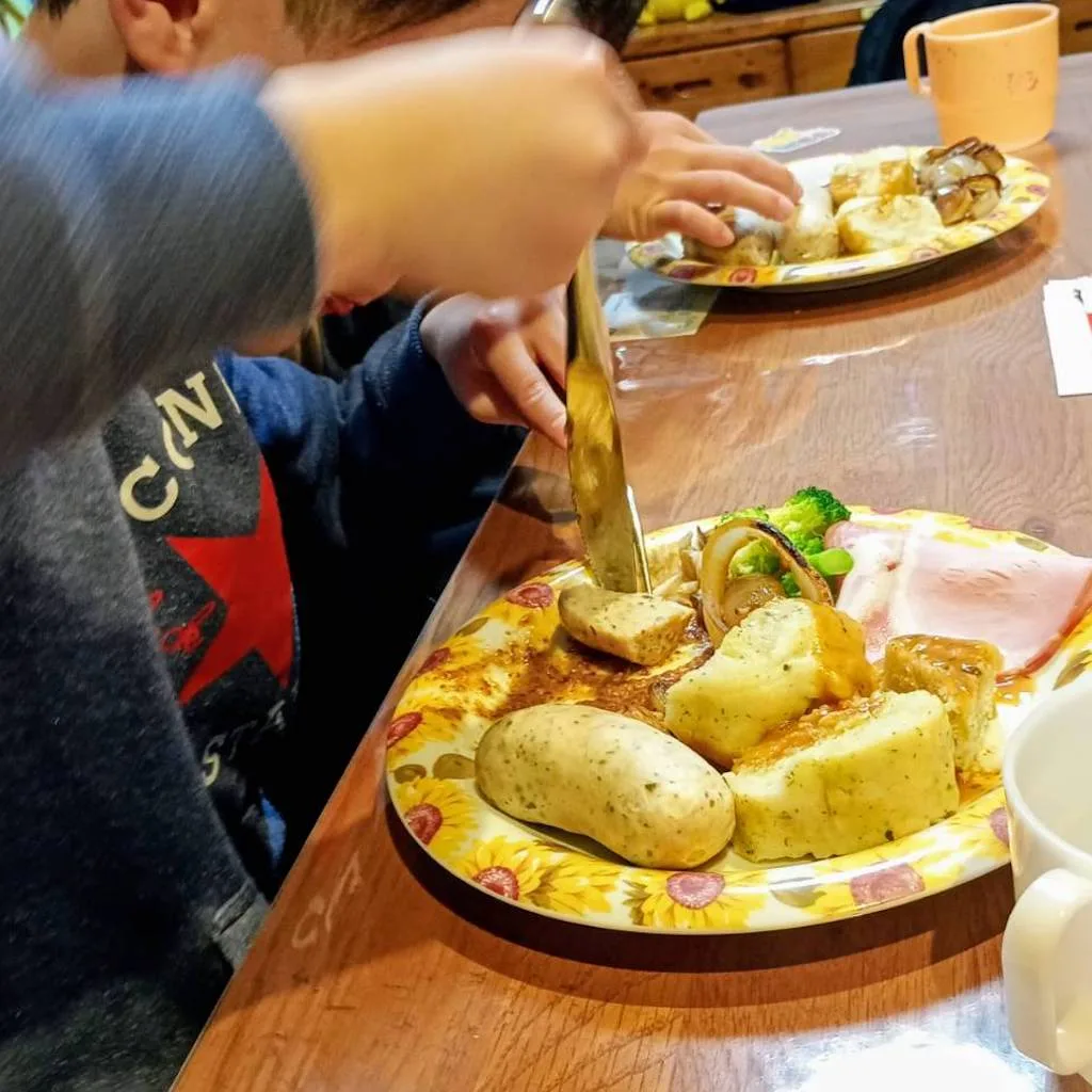 ドイツ料理で有名なヴァイスブルストは、茹でて皮を転がしながらはいで中身を、甘めのマスタードをつけて食べます。息子たちも、ナイフとフォークでつるんと転がるソーセージと格闘しながらいただきました。